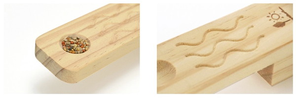 フラット型の小鳥用とまり木。小さなおやつ入れ付き。掴みやすいなみなみカットで病鳥にも優しい安心パーチ。