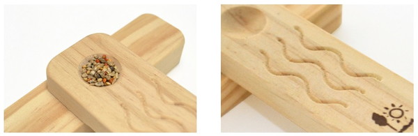 置き型の小鳥用とまり木。小さなおやつ入れ付き。掴みやすいなみなみカットで病鳥にも優しい安心パーチ。