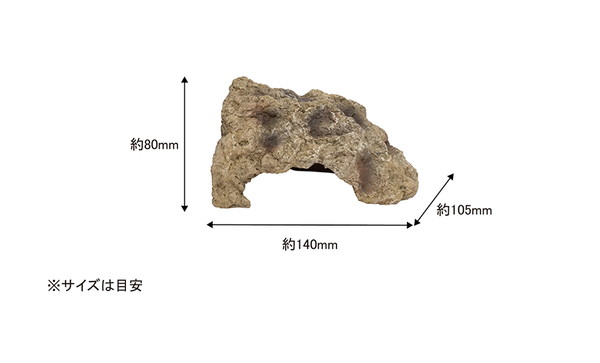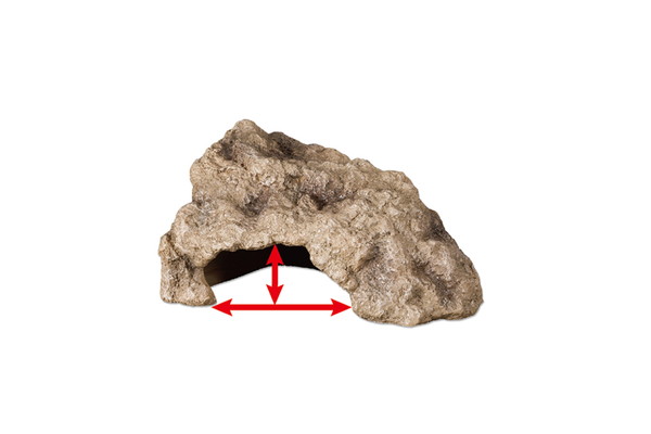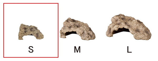 トカゲ類・リクガメ等の爬虫類、両生類用の身を隠すシェルター。ナチュラルな岩肌を模しつつ、コーナーにぴったりはまる、レイアウトしやすい便利な形。ケースコーナーを無駄にしない省スペースデザイン。