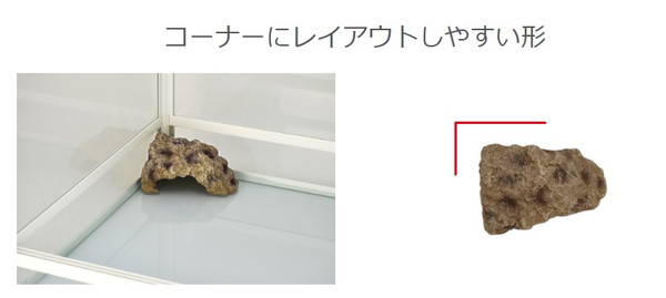 ナチュラルな岩肌を模しつつ、コーナーにぴったりはまる、レイアウトしやすい便利な形。