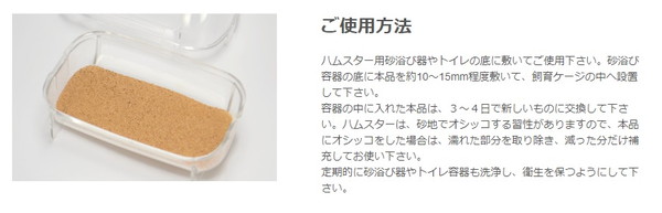 ※本品は、ハムスター用の浴び砂です。他の生体及び他の目的には使用しないでください。