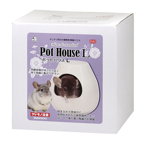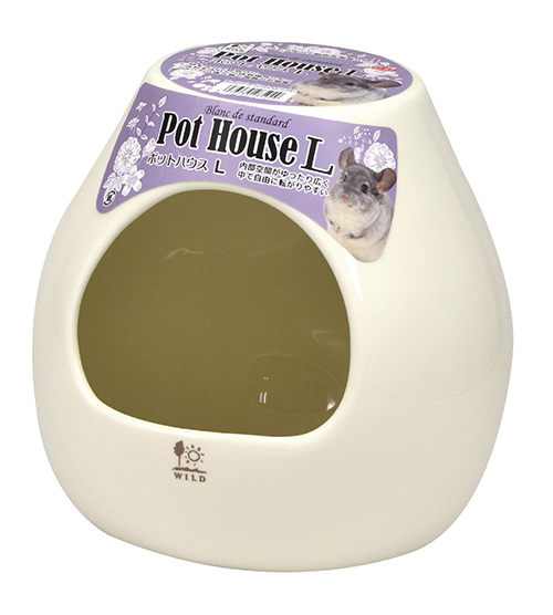 砂を入れて砂浴びに、床材を入れたら休息場所にも… ぽってり落ち着く陶器のお部屋。 Lサイズ。 内部空間がゆったり広く、中で自由に転がりやすい。