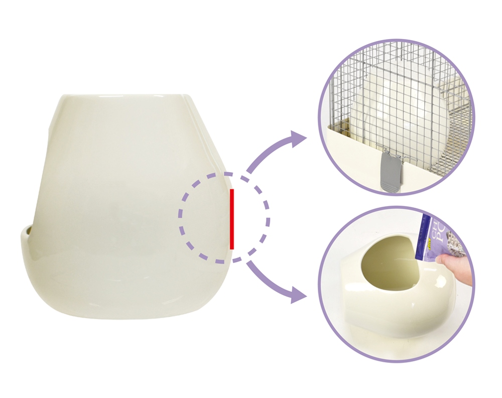 背面の一部がフラットで、ケージ壁面に寄せてもすっきり収まります。