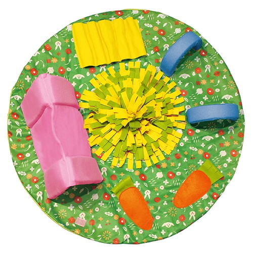 ・うさちゃんの習性を考えてつくった「部屋んぽ」専用の遊び場マットです。