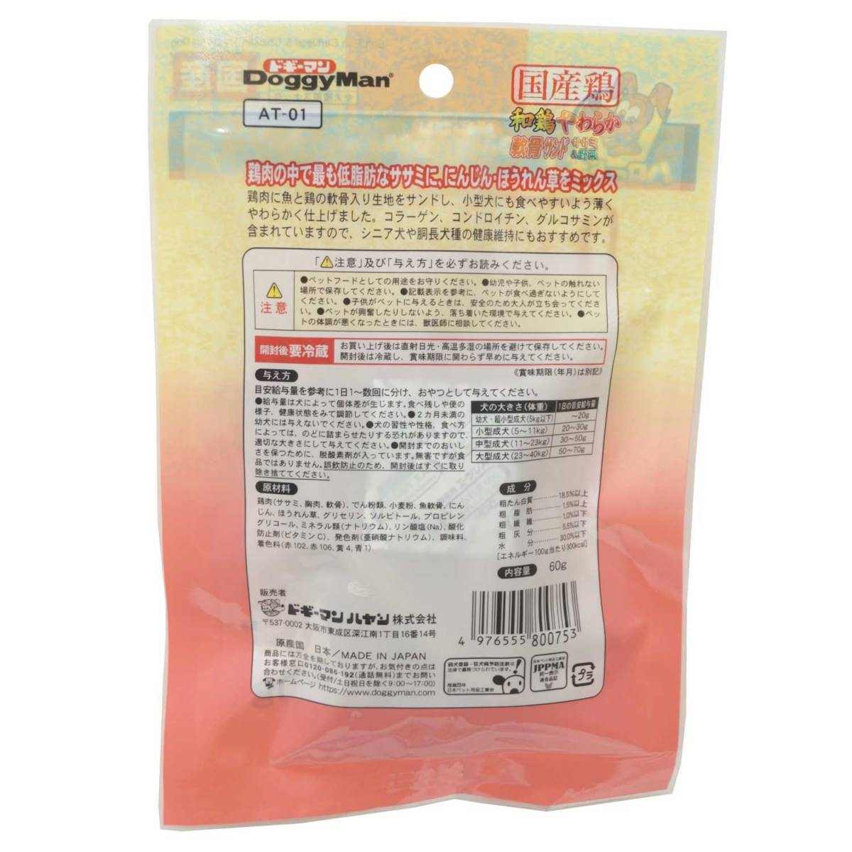 ドギーマン 和鶏やわらか軟骨サンド ささみ&野菜 60g