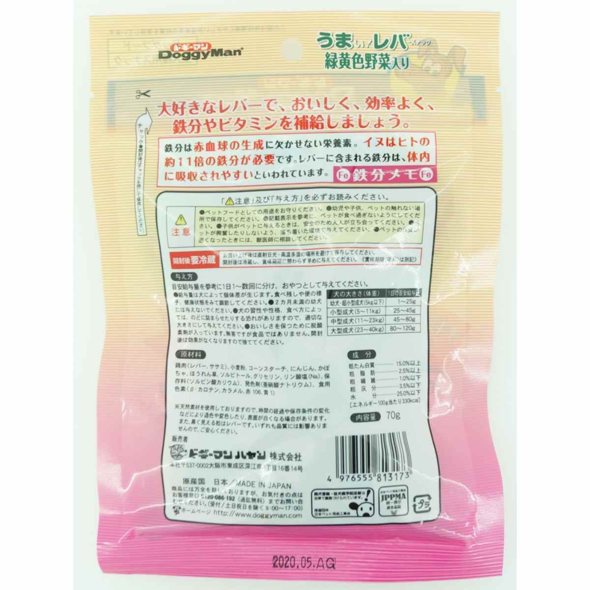 ドギーマン うまい!レバースナック 緑黄色野菜入り 70g