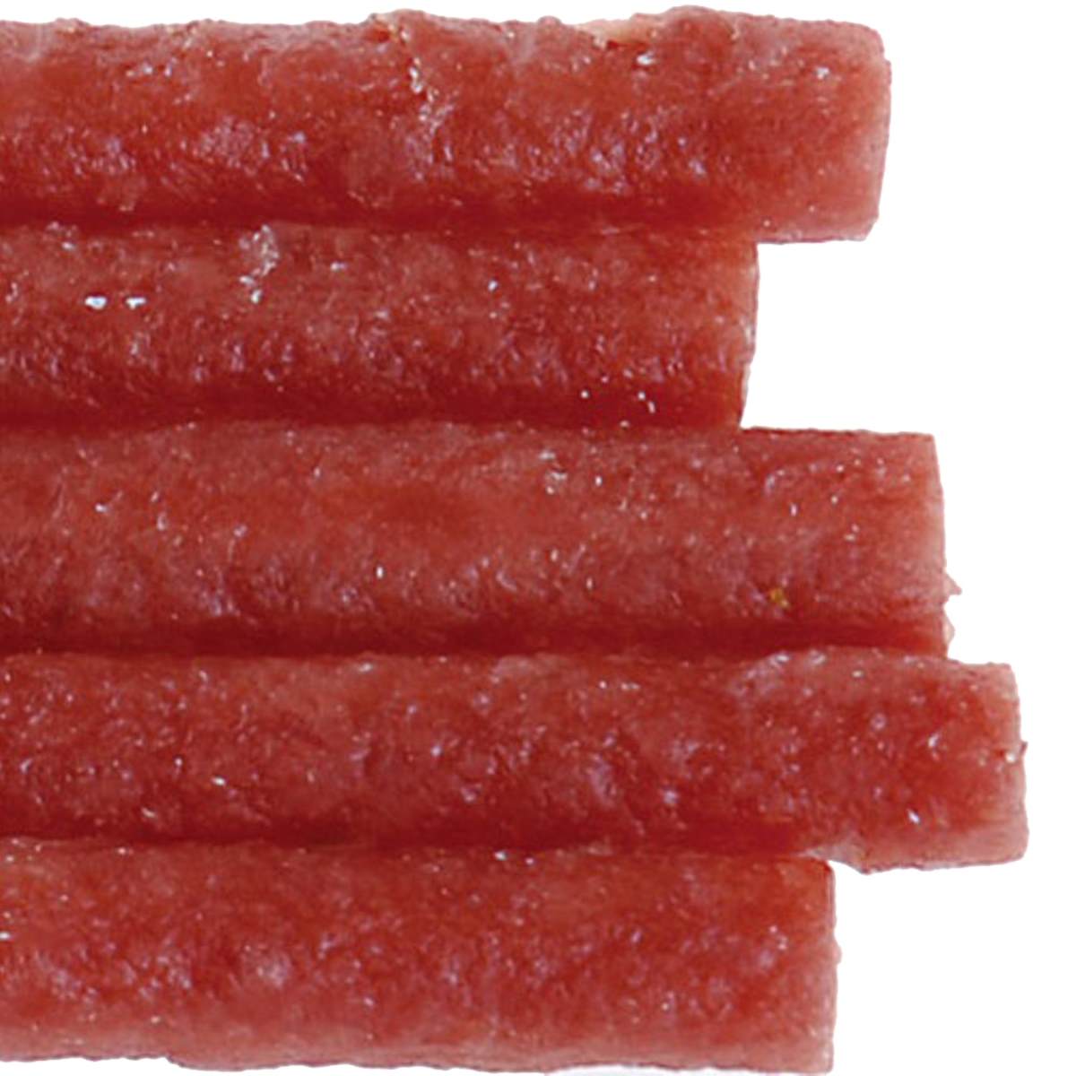 肉類(牛肉、生ゼラチン)、大豆たん白、パン粉、小麦粉、糖類、植物油脂、グリセリン、ソルビトール、プロピレングリコール、ミネラル類(ナトリウム)、保存料(ソルビン酸、デヒドロ酢酸ナトリウム)、くん液、ポリリン酸ナトリウム、発色剤(亜硝酸ナトリウム)、酸化防止剤(ビタミンE)、着色料(赤106)