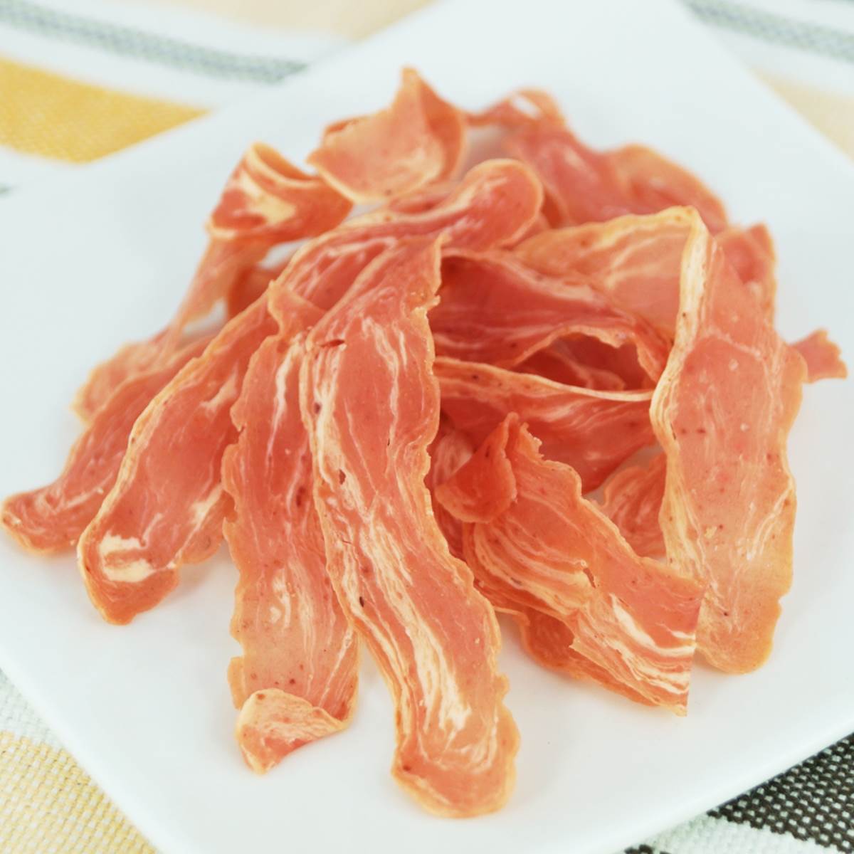 旨みたっぷりビーフ生地とミルク味の生地で、贅沢な味わいの生ハムのようなルックスに。