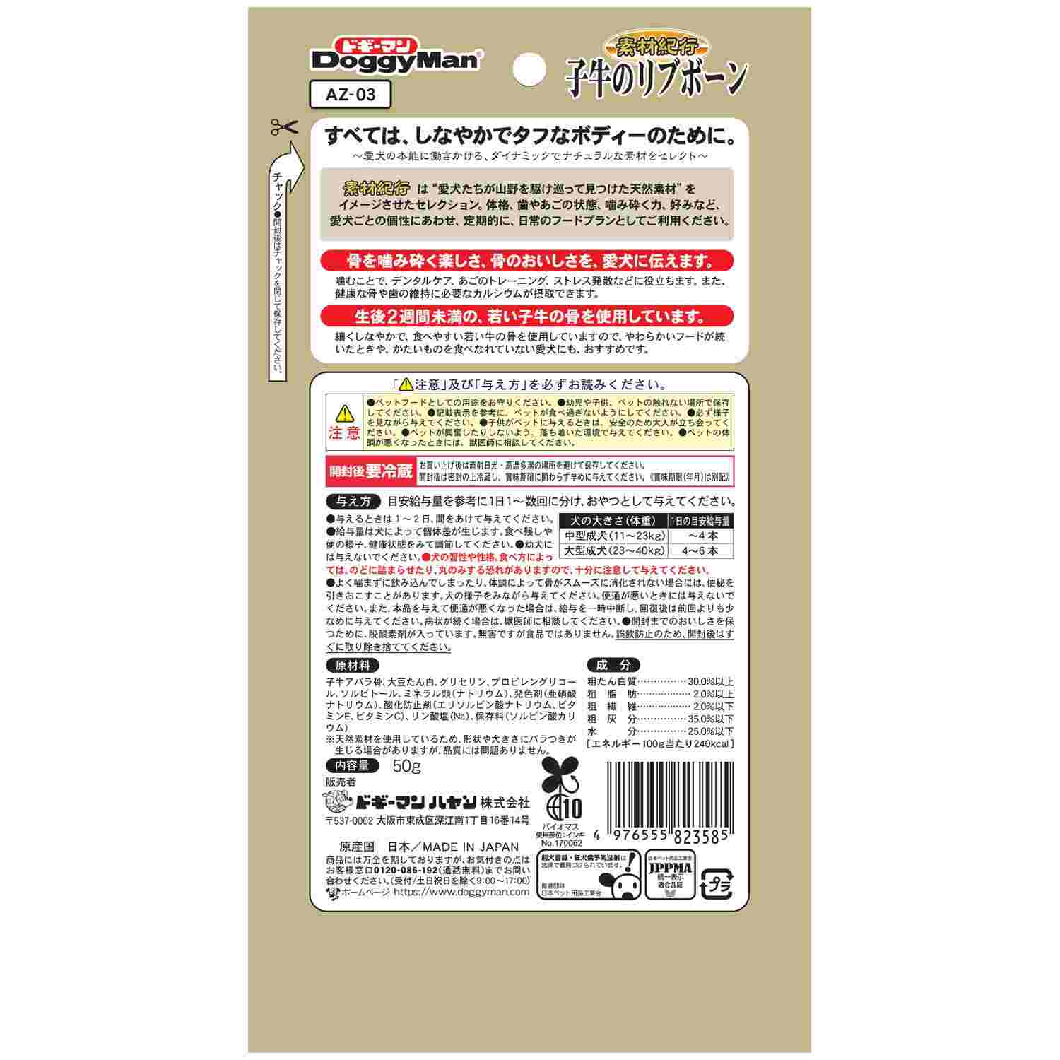 【1日の目安給与量】・中型成犬(11~23kg):~4本・大型成犬(23~40kg):4~6本