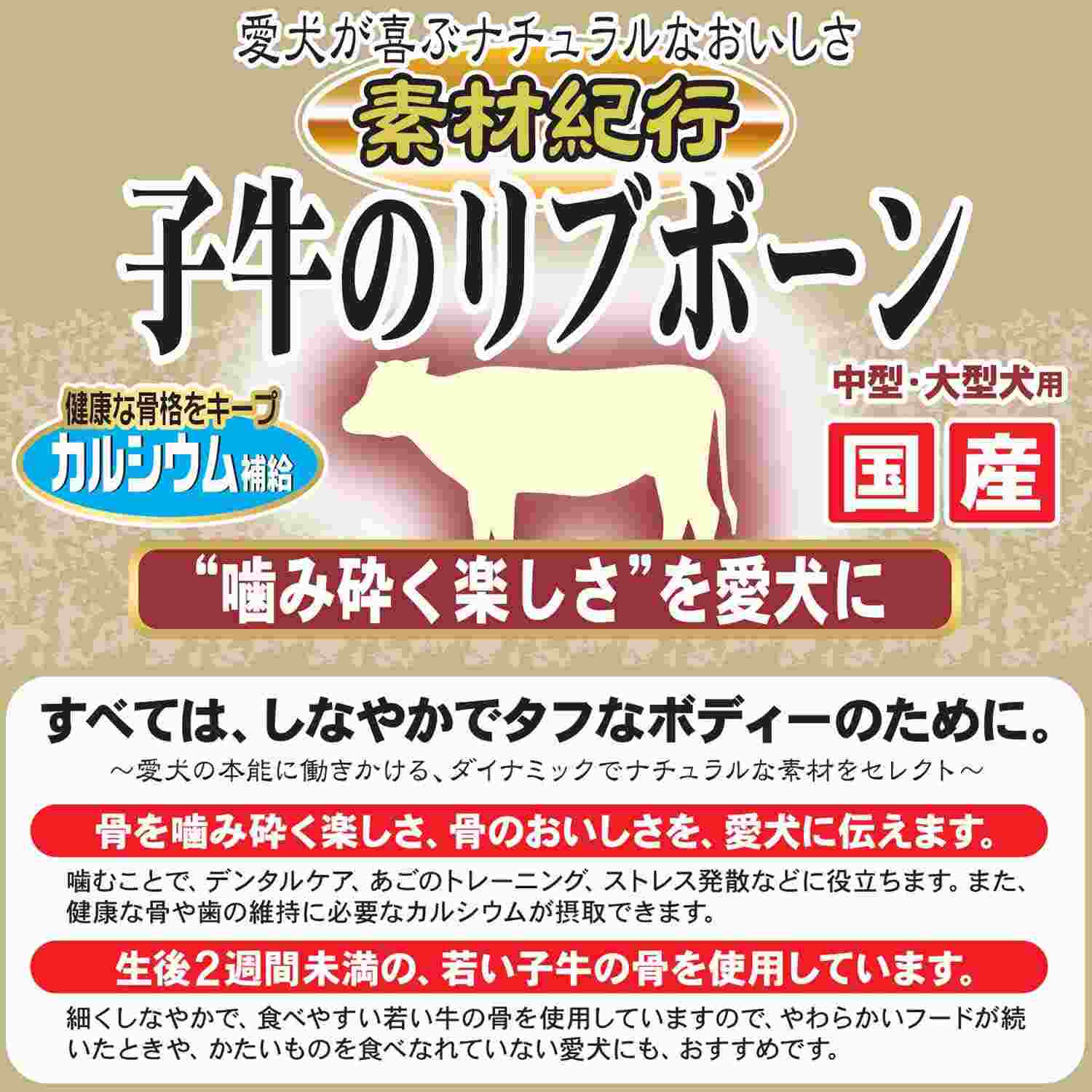 ●愛犬が「噛み砕く楽しさ」を味わえる肉がこびりついた子牛のあばら骨のおやつ。中型成犬、大型成犬用。