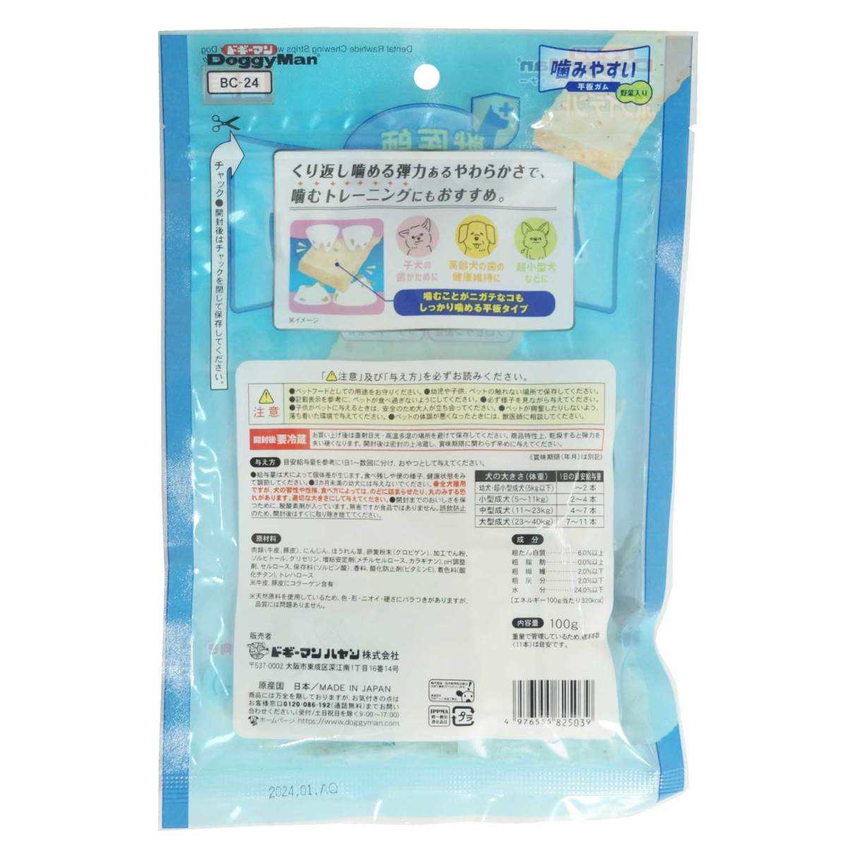 ドギーマン ホワイデント 噛みやすい 平板ガム 野菜入り 100g(標準11本)