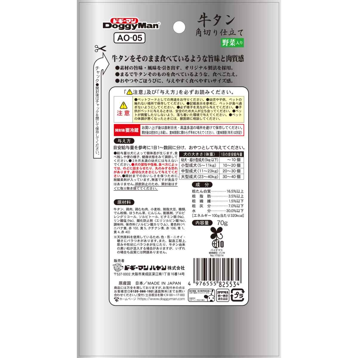 ドギーマン 牛タン角切り仕立て 野菜入り 70g