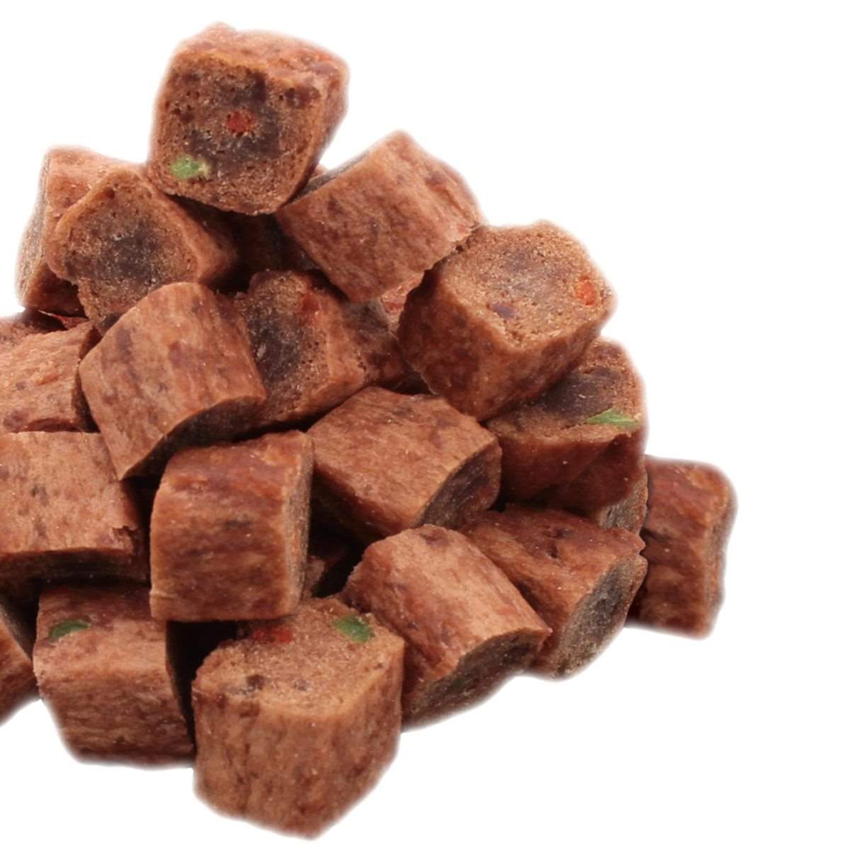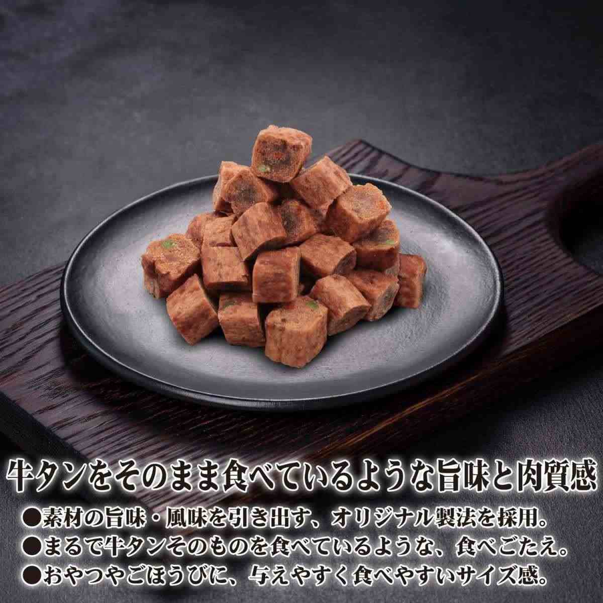 牛タンそのものを食べているような旨味と肉質感を感じられるキューブタイプのおやつ。野菜入り。