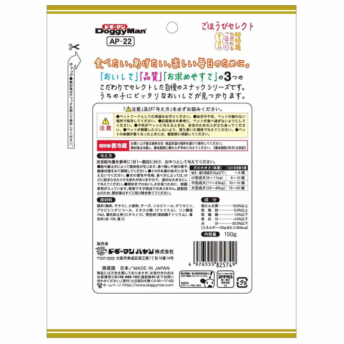ドギーマン ごほうびセレクト ササミちぎれるごほうびチーズ入り 150g