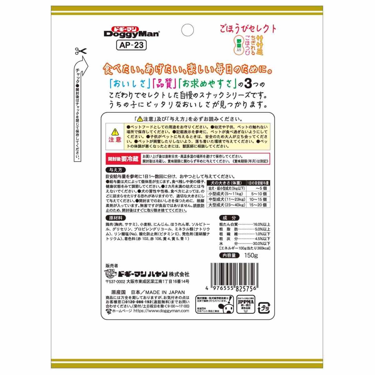 ドギーマン ごほうびセレクト ササミちぎれるごほうび野菜入り 150g