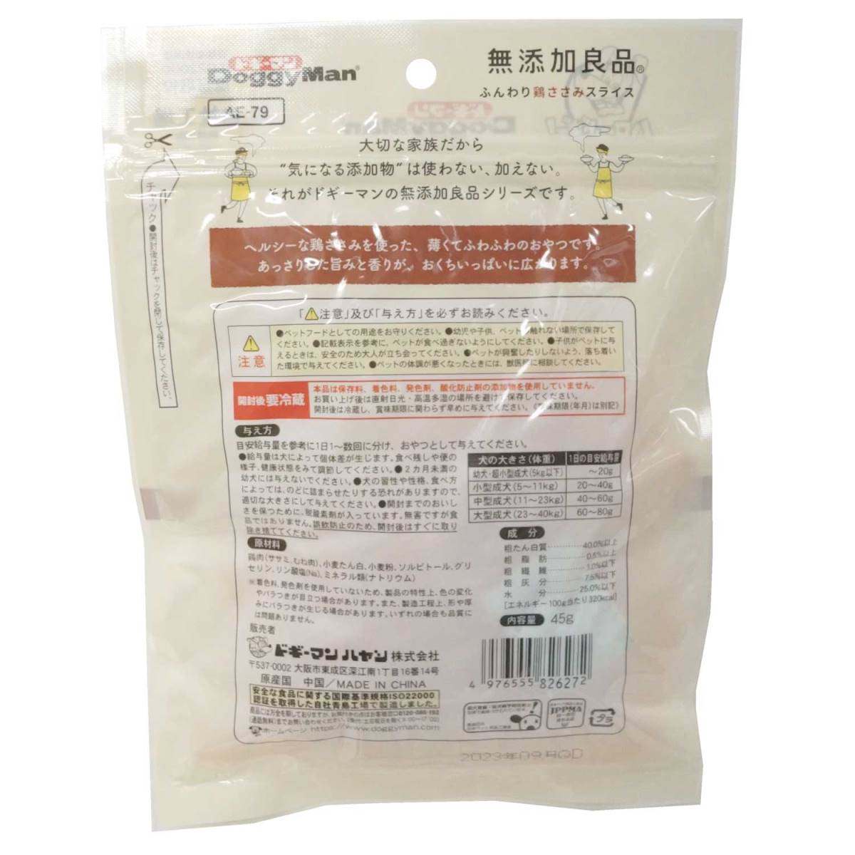 ドギーマン 無添加良品 ふんわり鶏ささみスライス 45g