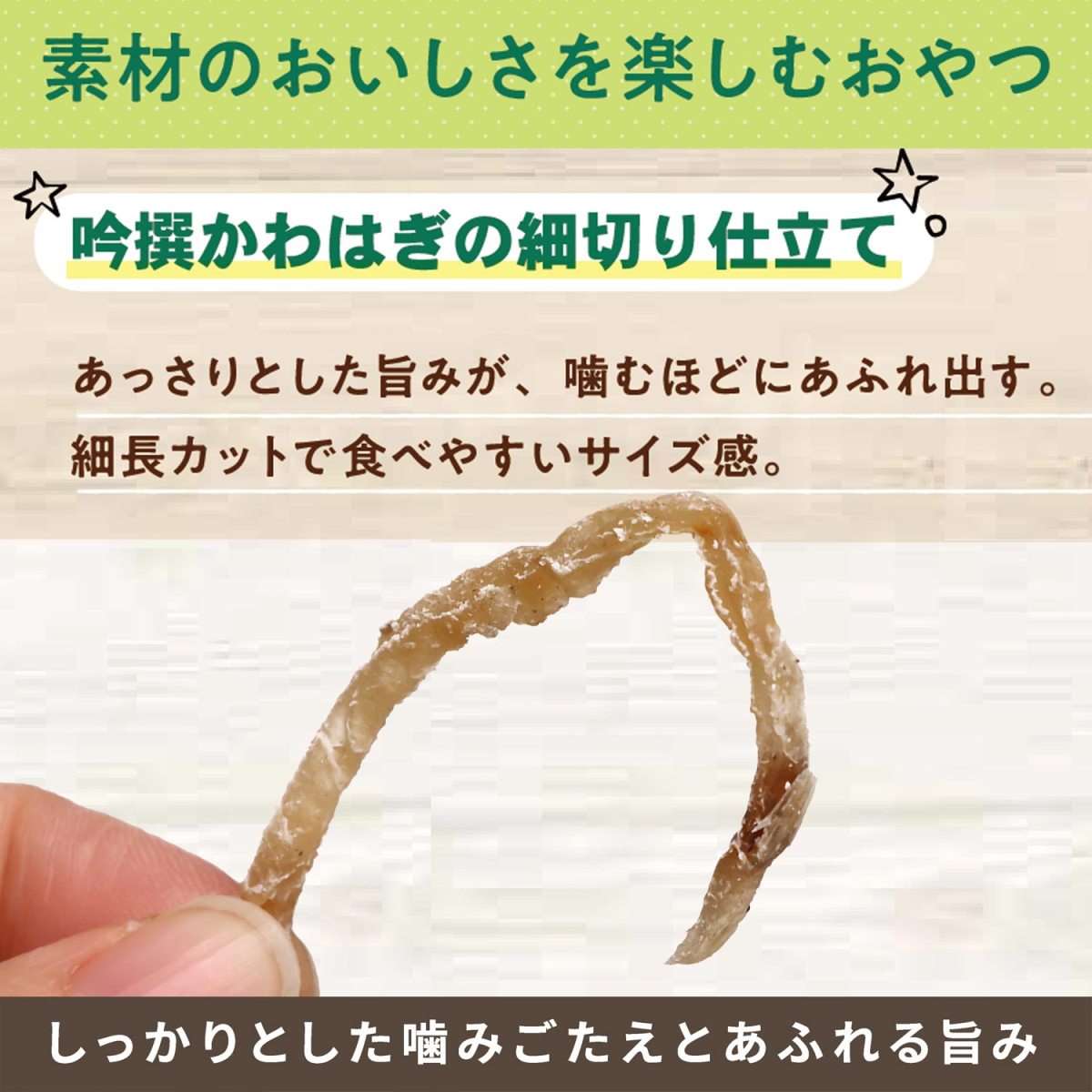風味豊かな焼いたカワハギをプレスし細く長くカットしたおやつ。