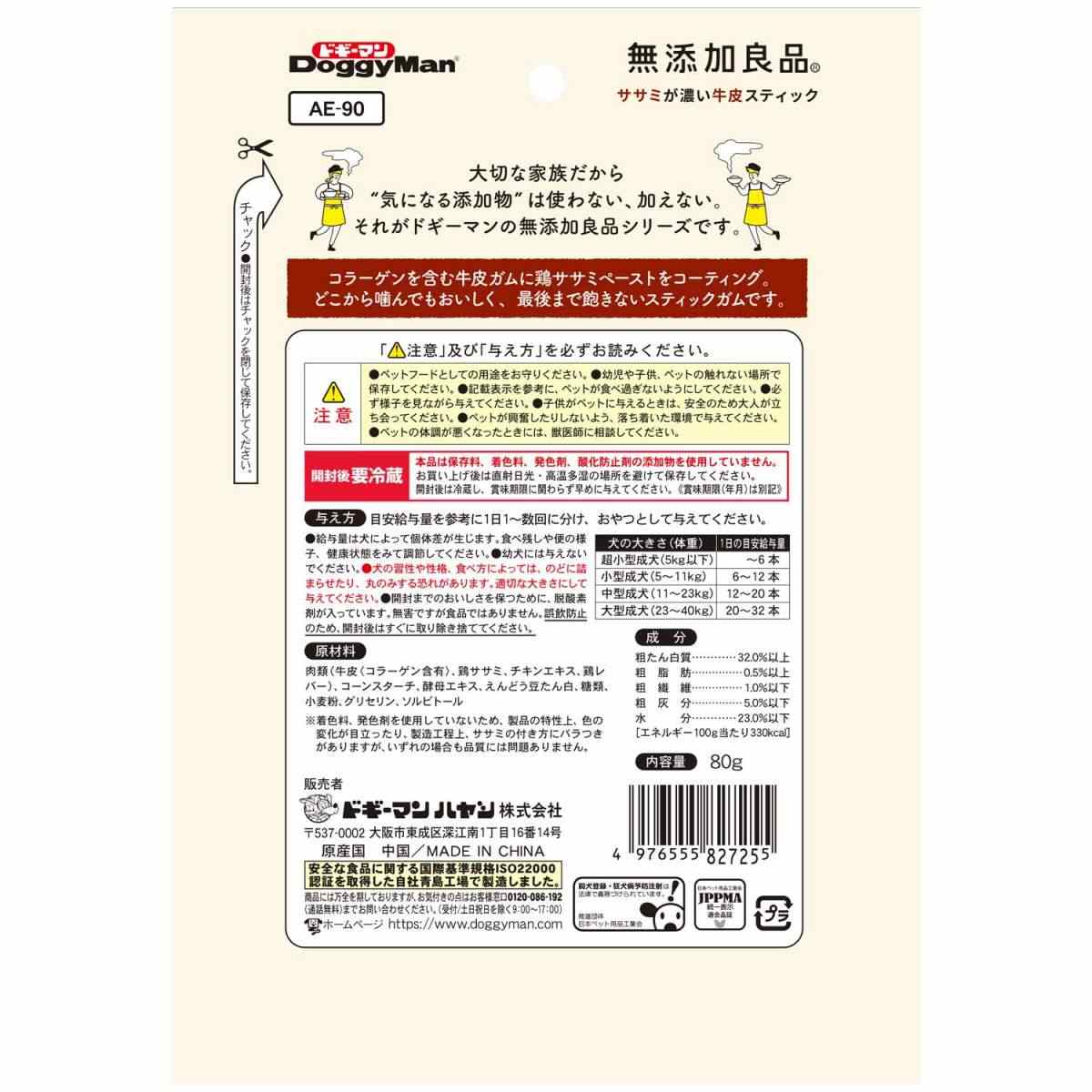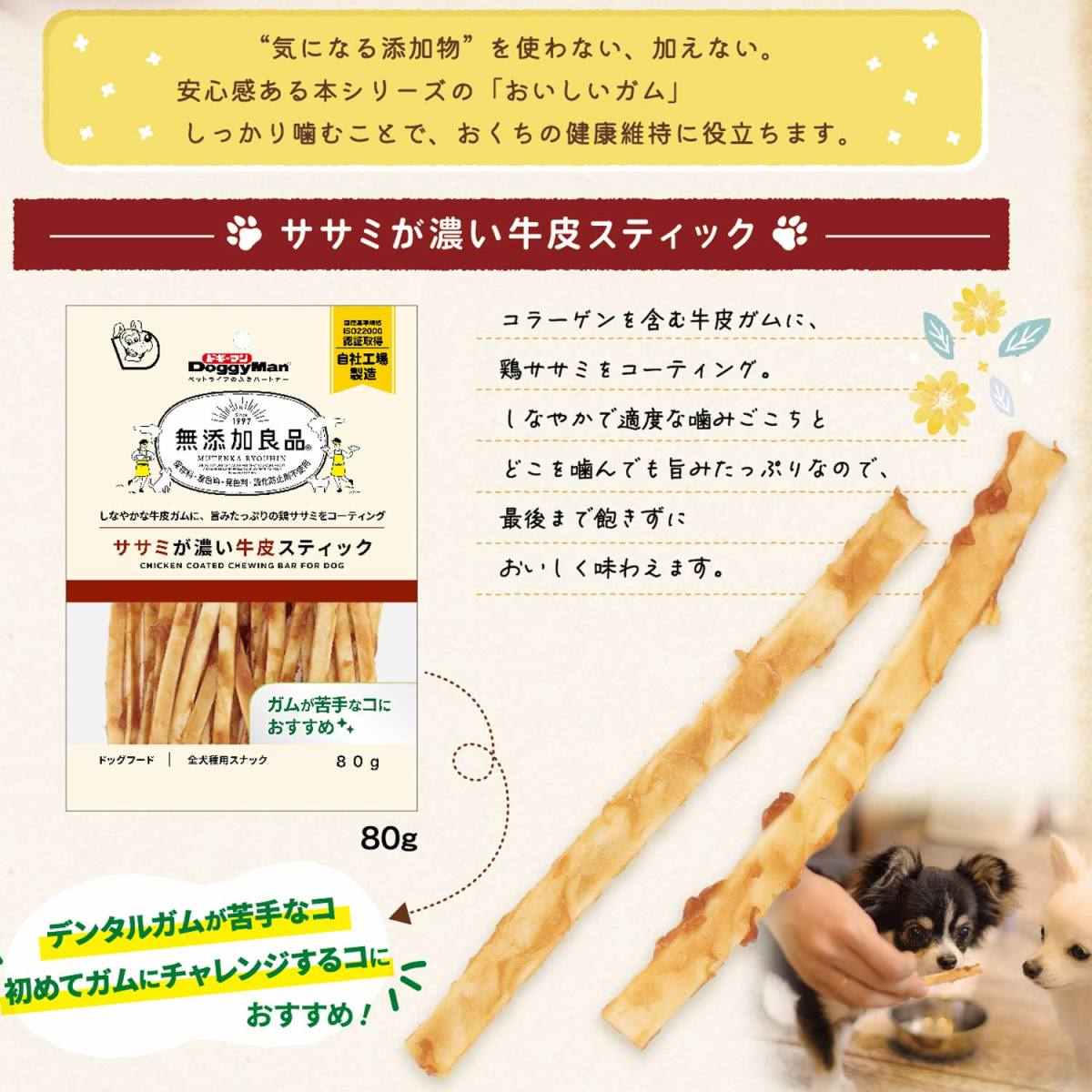 ドギーマン 無添加良品 ササミが濃い牛皮スティック 80g