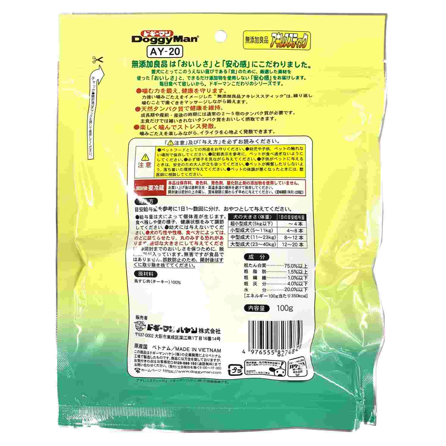 ●ターキーの筋肉をていねいに加工、乾燥させた。●噛むことで歯と歯ぐきの健康を維持する、天然素材ガムスナック。●鶏などに比べ大柄なターキー(七面鳥)のしっかりとした筋肉を使用。●適度なサイズでべたつきにくく室内犬に最適。●保存料、着色料、発色剤、酸化防止剤不使用の無添加良品。