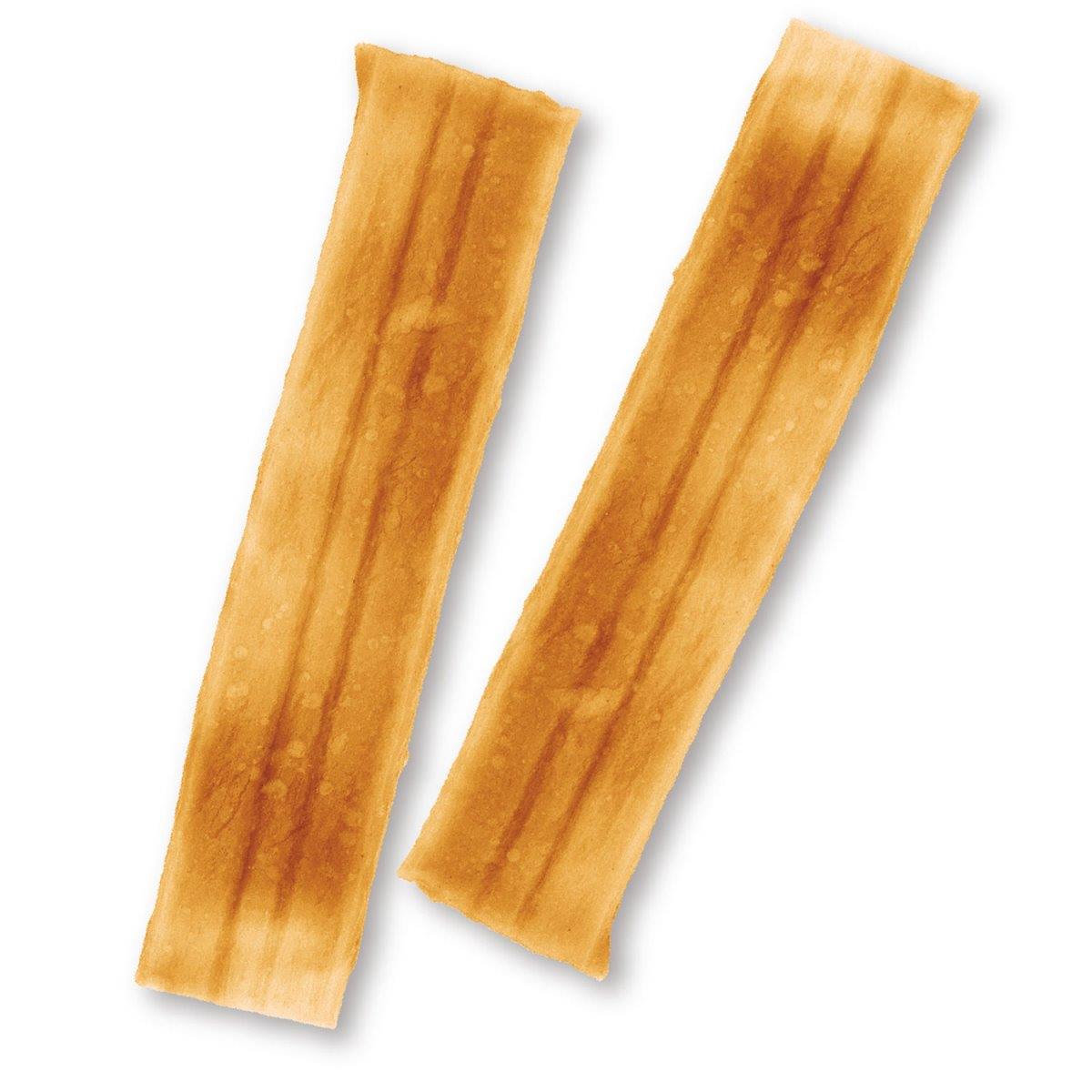 ガムが苦手なワンちゃんに、おいしく長く噛めるガムを作りました。平板状のガムにササミをコーティング。