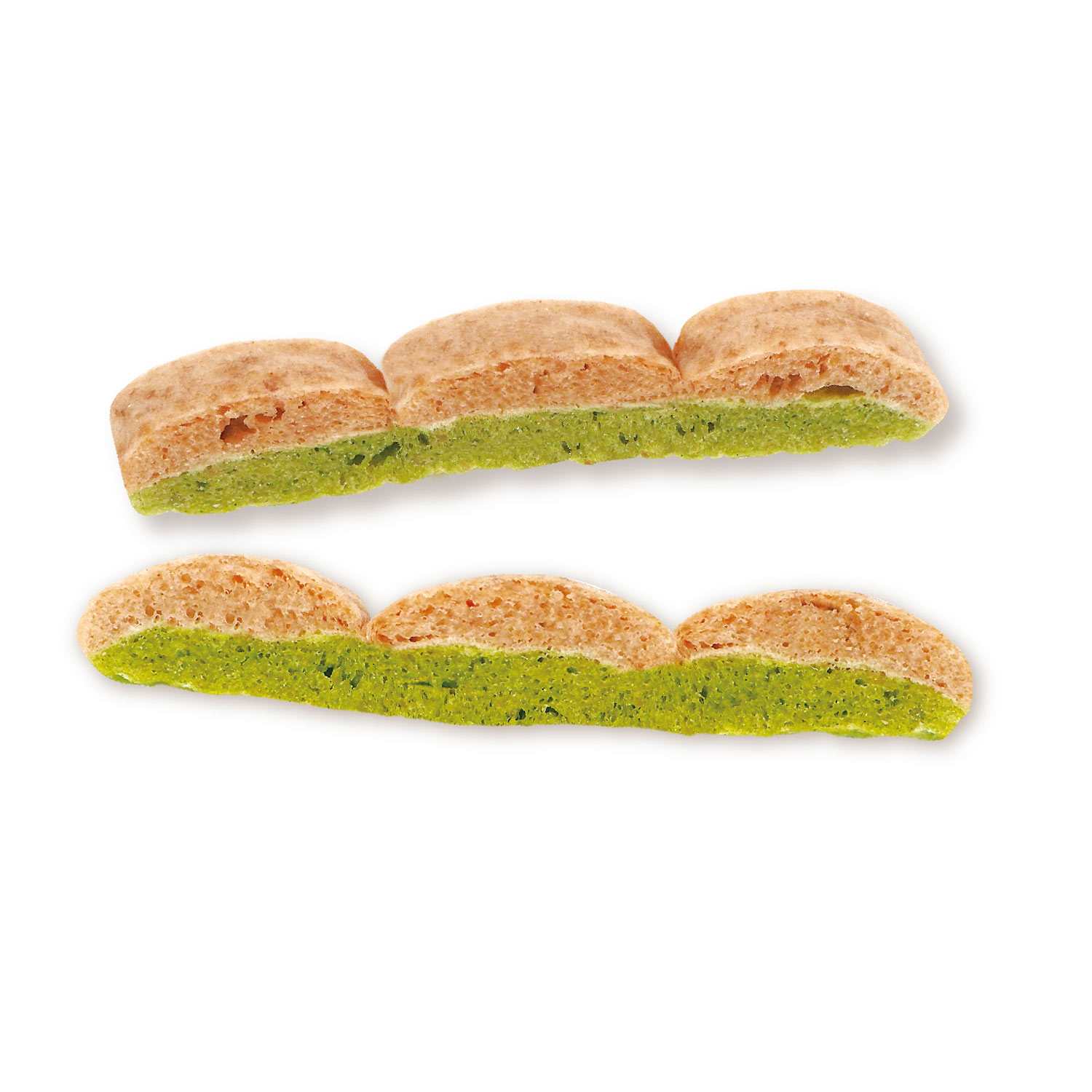 肉類(鶏ササミ、鶏胸肉、鶏もも肉、鶏肉、鶏レバー)、小麦粉、糖類、タピオカでん粉、ビール酵母、魚介エキス、魚介パウダー、野菜類(大麦若葉、ケール、ブロッコリー、かぼちゃ、チンゲン菜、パセリ、にんじん、セロリ、ゴーヤ、ほうれん草、桑の葉、モロヘイヤ、よもぎ、トマト)、油脂類、グリセリン、ミネラル類(カルシウム、ナトリウム、カリウム、亜鉛、鉄、セレン、銅、ヨウ素)、トレハロース、膨張剤、ソルビトール、ポリリン酸ナトリウム、着色料(クロレラ、クチナシ)、ビタミン類(E、B12、B2、D)
