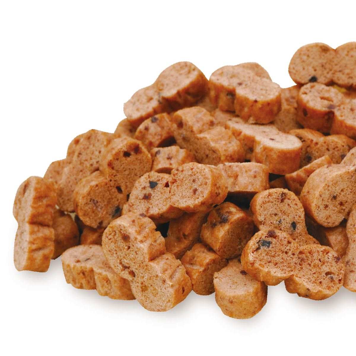 肉類(鶏ササミ、鶏胸肉、鶏肉、牛タン)、小麦粉、糖類、タピオカでん粉、ビール酵母、魚介エキス、調味料、チーズパウダー、コラーゲンペプチド、軟骨抽出物(コンドロイチン含有)、グリセリン、トレハロース、膨張剤、ソルビトール、ミネラル類(ナトリウム)、ポリリン酸ナトリウム、着色料(クチナシ、 カラメル)、グルコサミン