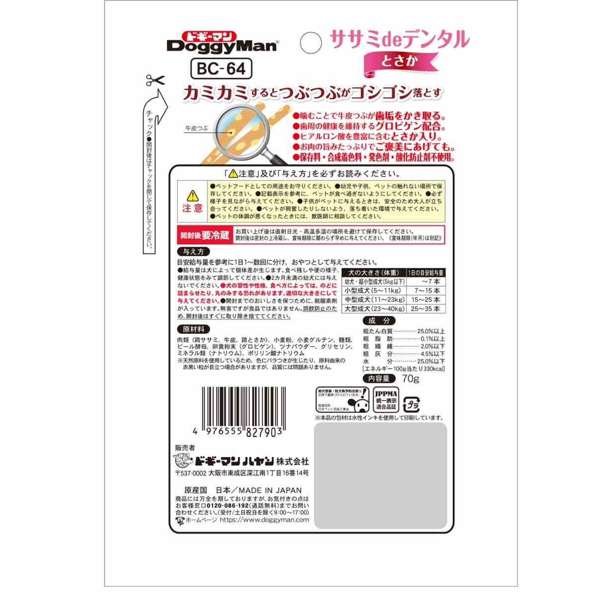 ドギーマン ホワイデント ササミdeデンタル とさか 70g