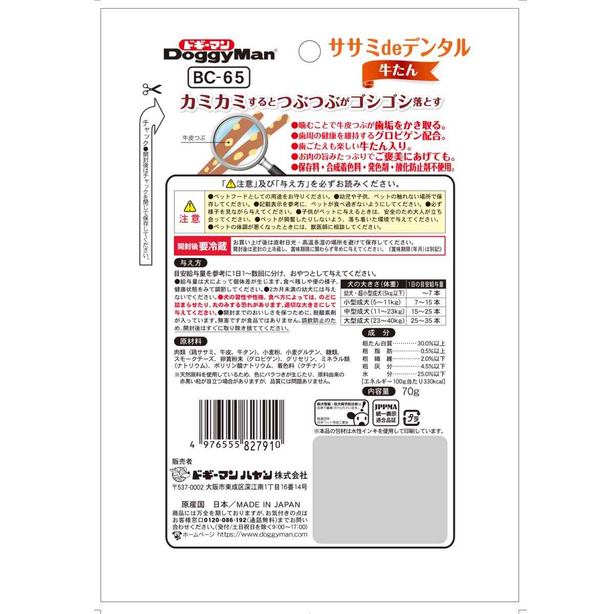 ドギーマン ホワイデント ササミdeデンタル 牛たん 70g
