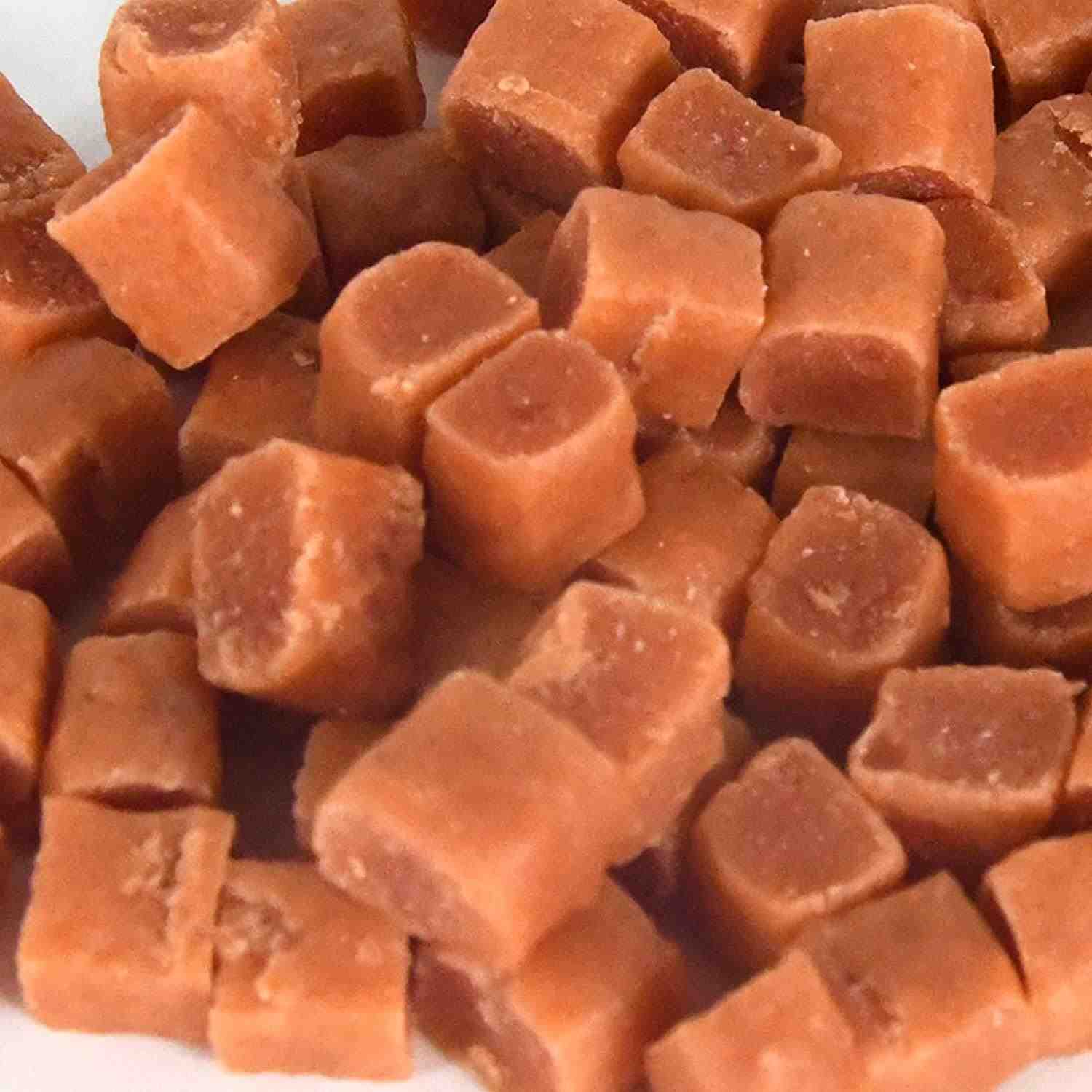 チキン生地にりんごが入ったキューブタイプのおやつ。