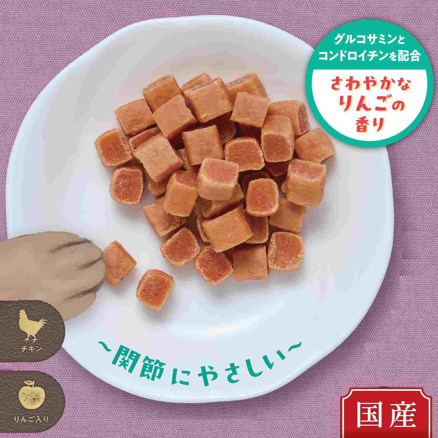 ●おいしさにカラダへの思いやりをプラスして作ったおやつじかんシリーズ。●もっちりとした食感、ひとくちサイズのちいさなキューブ。●愛犬が大好きなチキンとさわやかな香りのりんご入り。●関節にやさしいグルコサミン・コンドロイチンを配合。●おやつじかんが待ち遠しくなるおいしさでしつけやごほうびにもなる。
