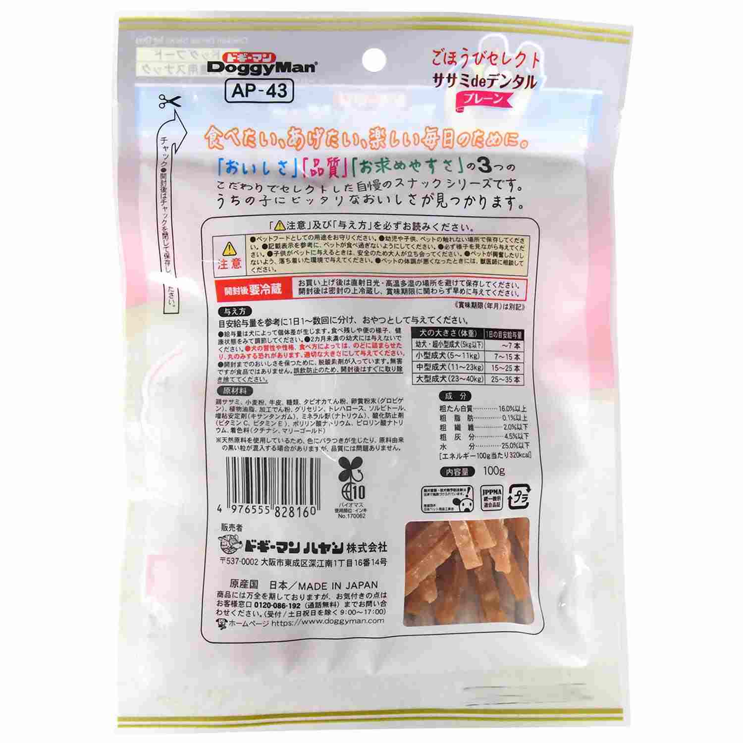 ●ササミ生地にコラーゲンつぶを配合したおいしいデンタルスナック。