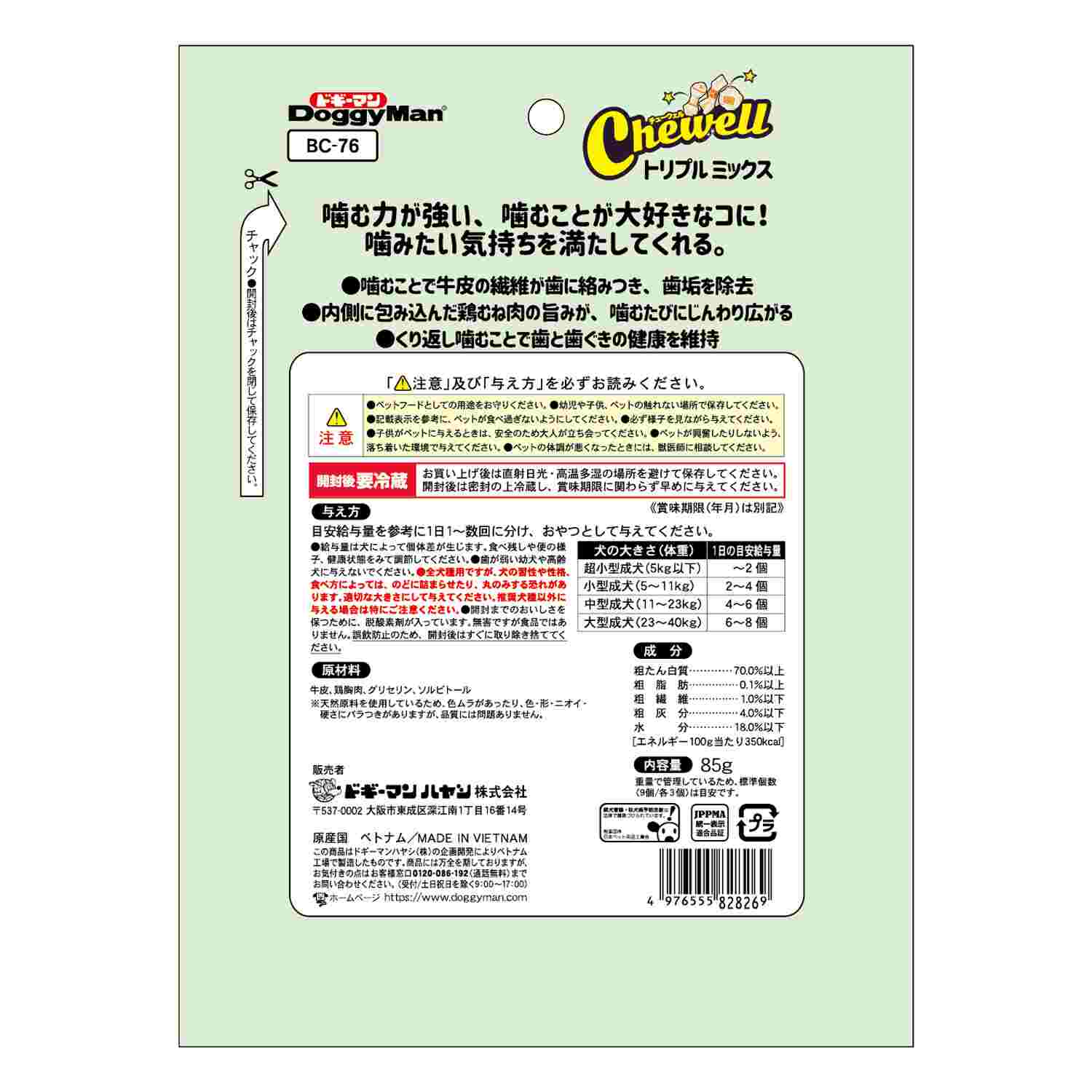 ●定番の骨型、薄型で食べやすいリボン型、遊べるボール型、ガム3種類のセット。 ●ガムのベースは天然牛皮。牛皮の繊維が歯に絡みついて歯の表面を拭き取る。●鶏むね肉を加工したシートとセットすることで、おいしく長く食べられる。●ガムが苦手な子もおいしく噛めるよう、牛皮ガムと鶏むね肉シートを組み合わせた。●保存料、着色料、発色剤、酸化防止剤不使用の無添加良品品質。
