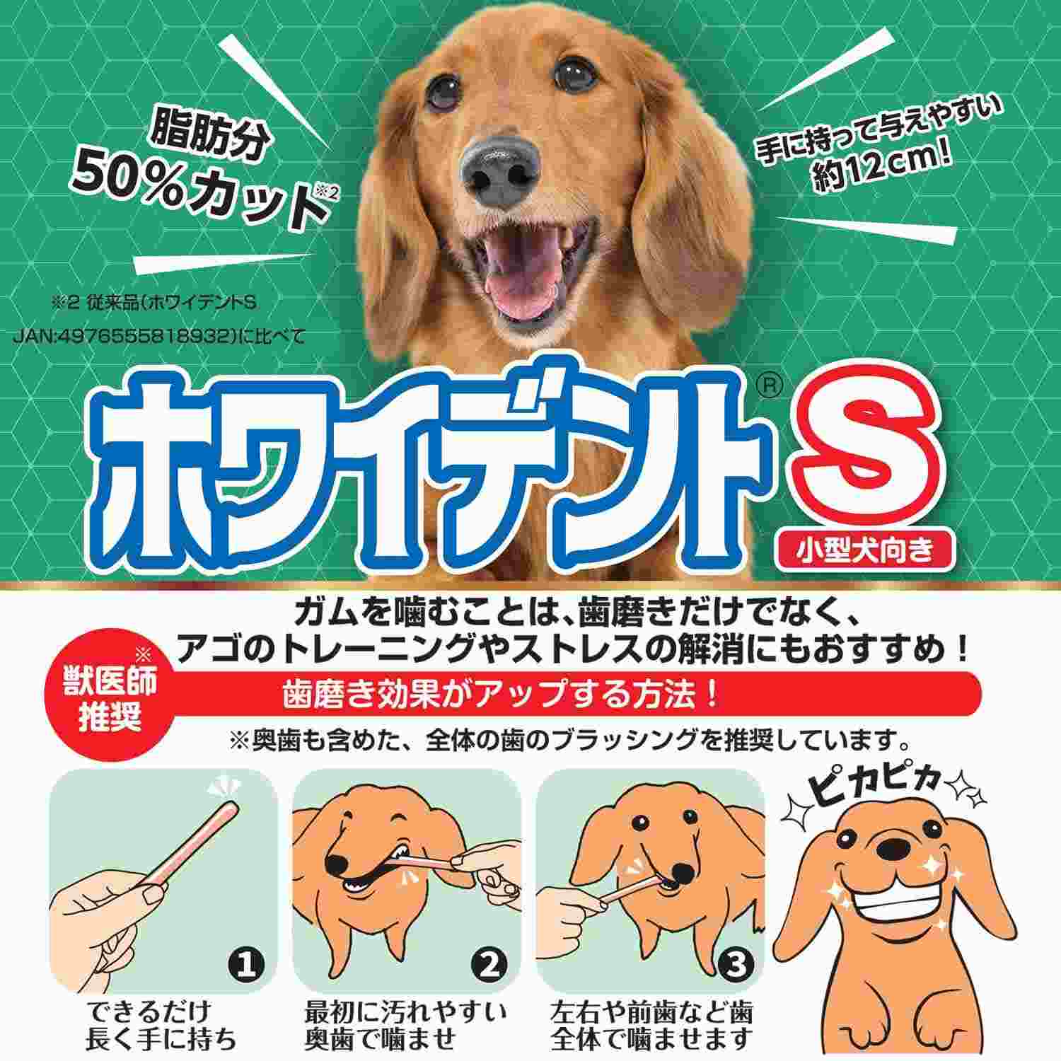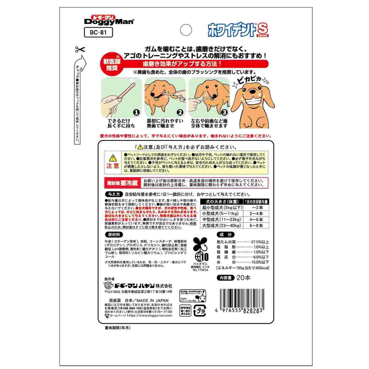 ●コラーゲンを含む牛皮を主原料にした硬くておいしくしっかり噛むことで歯垢を絡めとるガムスナック。 ●中心部分が空洞になっているため歯が刺ささったときに歯の汚れをこそげ落としやすい。●噛むことで牛皮のコラーゲンの繊維が歯に食い込み、歯垢を絡め取り、口腔内の健康維持に役立つ。●歯周の健康を維持する卵黄粉末(グロビゲン)、プロポリス配合。手に持って与えやすい1本約12cm。●ホワイデントを食後に一本、ホワイデントで歯磨き習慣を始めましょう。