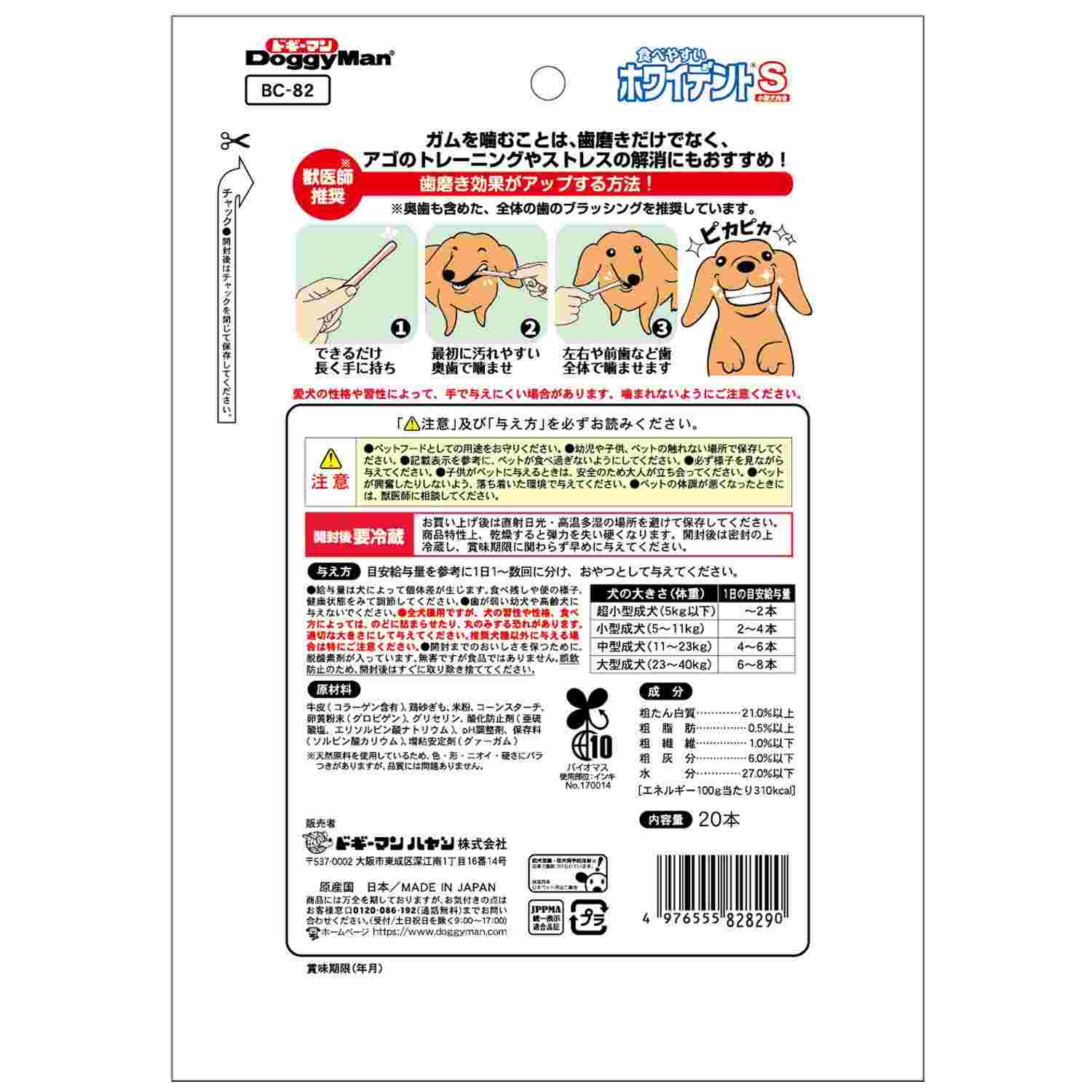 【1日の目安給与量】・超小型成犬(5kg以下):~2本・小型成犬(5~11kg):2~4本・中型成犬(11~23kg):4~6本・大型成犬(23~40kg):6~8本