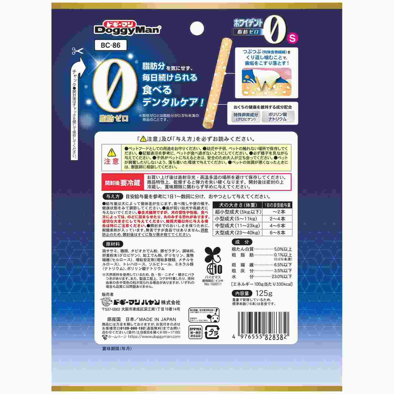 ●毎食後に噛んで欲しいから脂肪ゼロ。脂肪分を0.5%未満に調整した脂肪ゼロタイプの歯みがきガムスナック。 ●しなやかで適度なやわらかさで粘り強い。しっかり噛んで食べやすいスティック形状のガム。小型犬向き。●練り込んだ特殊食物繊維のつぶつぶを繰り返し噛むことで歯垢を落とす。●歯周の健康を維持する特殊卵黄成分(グロビゲン)、ポリリン酸ナトリウム配合。●毎食後の習慣に安心の保存料、着色料、発色剤、酸化防止剤不使用、無添加良品品質。