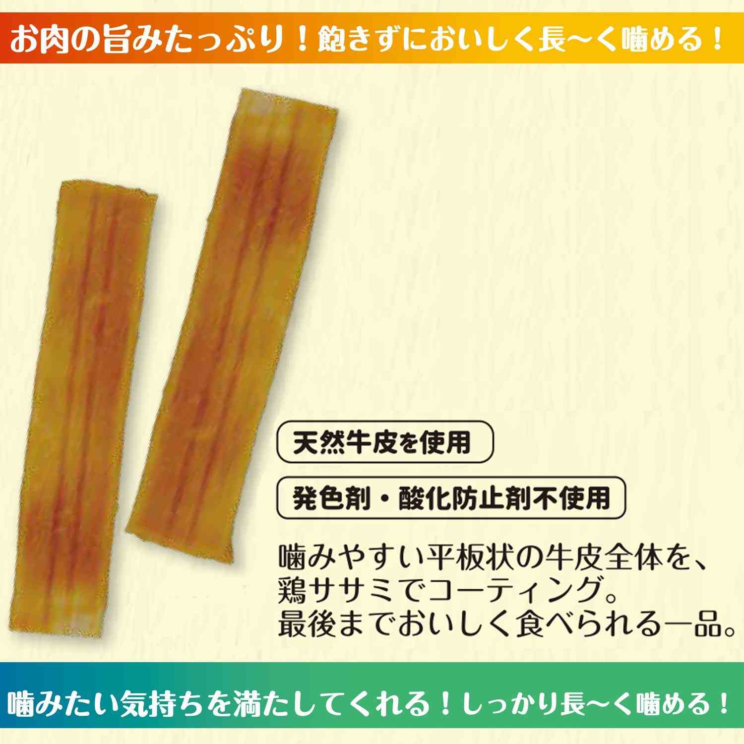 ●鶏ササミでコーティングしたおいしい天然牛皮を原料に使った平板形状のガム。