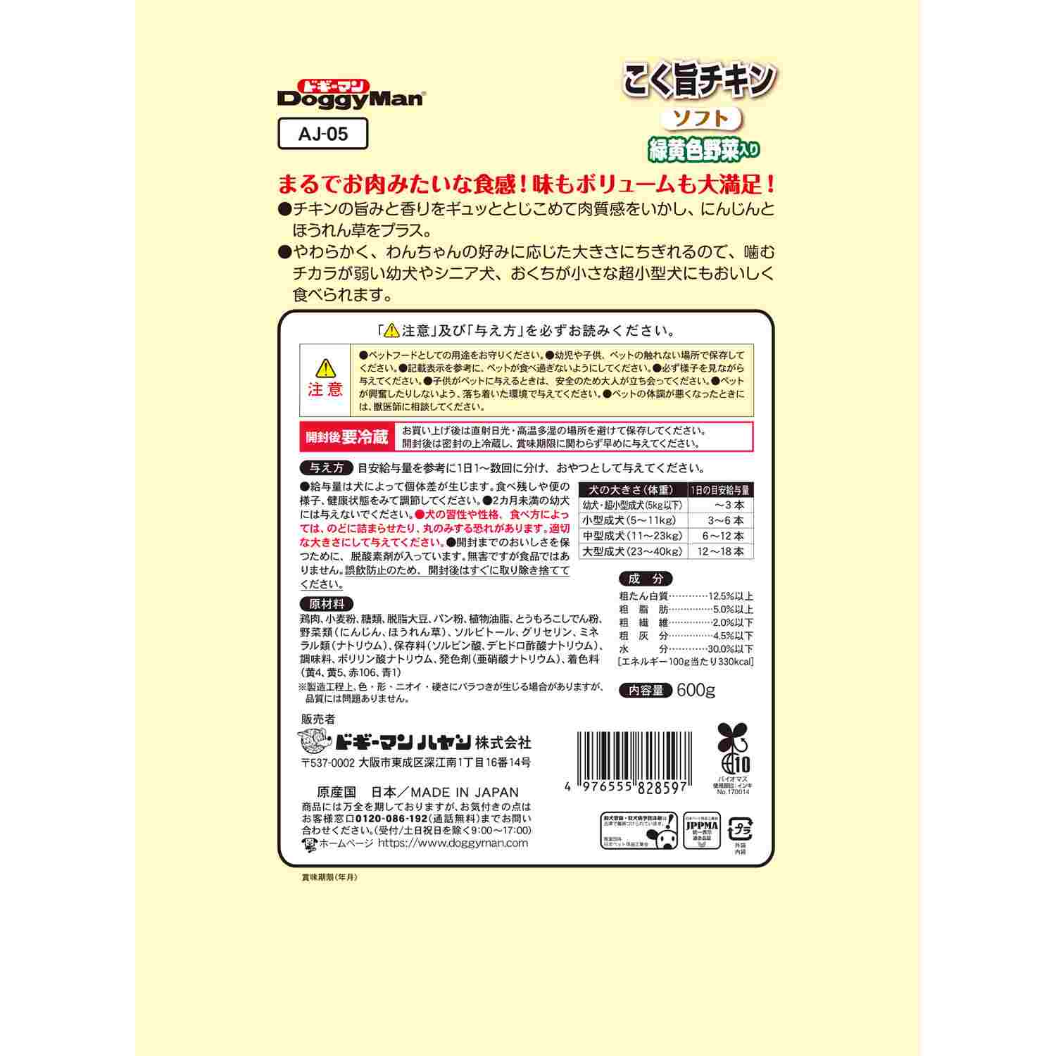 お肉が大好きなワンちゃんのためのボリューム満点もっちりやわらかチキンジャーキーに緑黄色野菜をプラス!