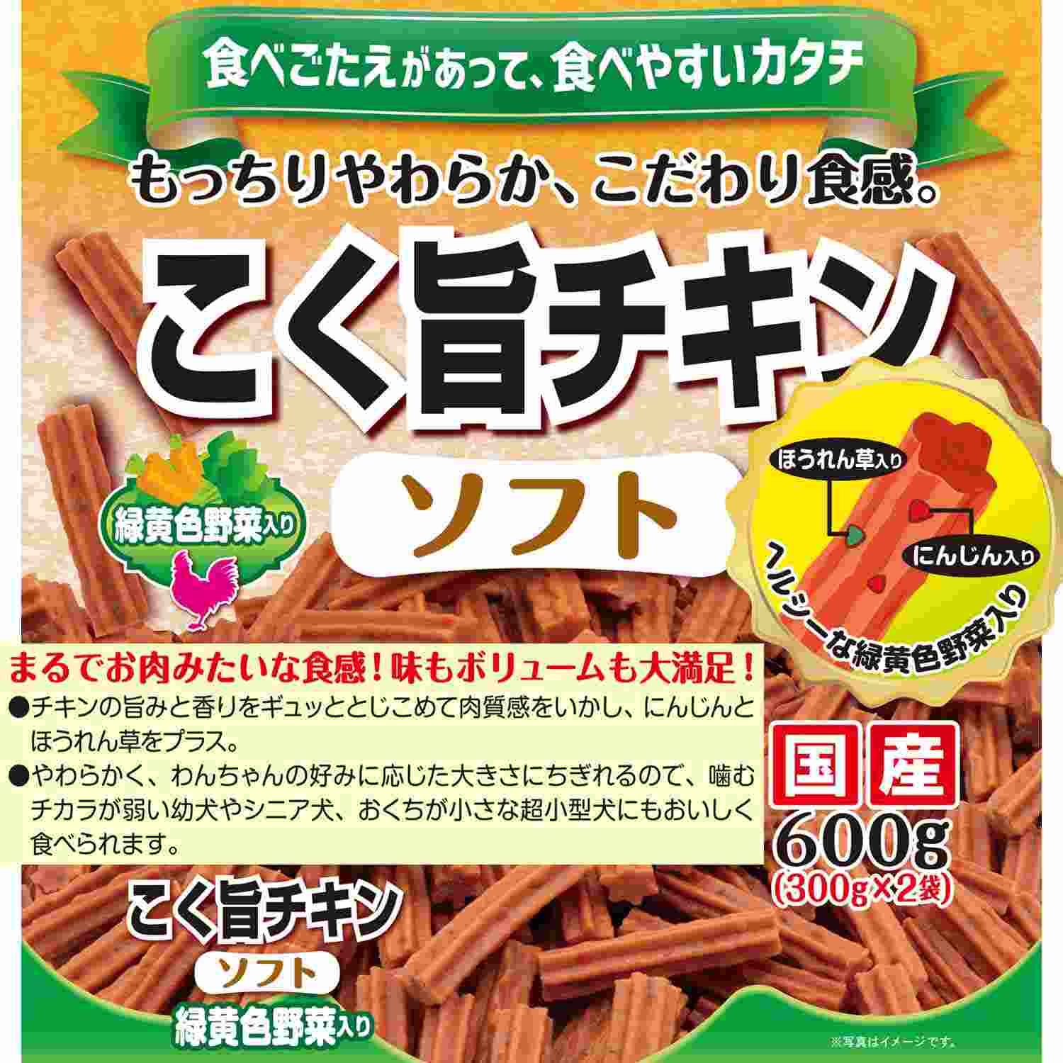 ●お肉が大好きな愛犬にボリューム満点もっちりやわらかチキンジャーキー。緑黄色野菜(にんじん、ほうれん草)配合。●お肉の旨味と香りを存分に堪能できる。●ソフトでちぎりやすく、食べやすい大きさにできる。●やわらかく、ちぎれるので噛む力が弱い幼犬やシニア犬、口が小さな超小型犬も美味しく食べられる。●ごほうびに、お散歩帰りなどにぴったり。