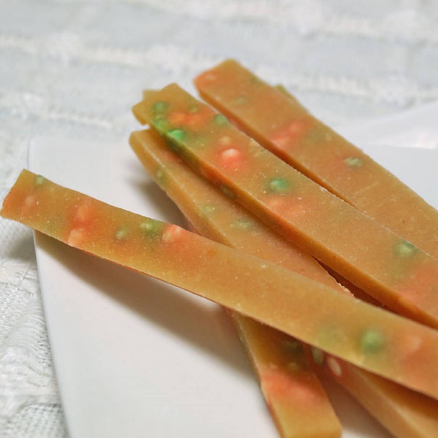 ●やわらかな細切りでちぎってもあたえやく、健康維持に気を使う愛犬や高齢犬、小型犬にうれしいごほうび。