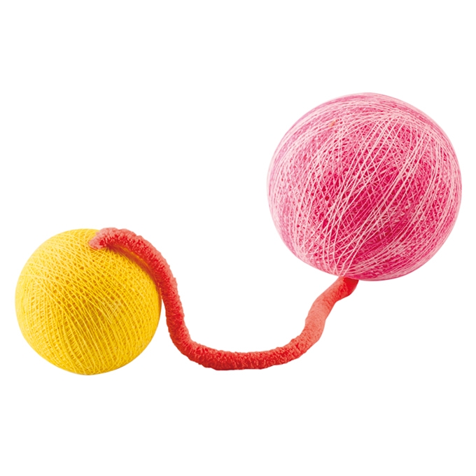 ・軽くて爪が引っかかりやすい、2つのボールがつながったタイプのおもちゃです。