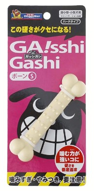 ・とにかく硬い、ガチガチな噛み心地が魅力のおもちゃです。 硬さを徹底追求し、硬質タイプのナイロンを使用しています。・噛む力の強いコ、硬いおもちゃを噛むのが大好きなコに特にオススメしたい、 ハードタイプのコミュニケーション玩具です。・表面はザラッとしていて質感+突起付き。 刺激を与えて飽きさせない!・ガシガシ噛むことで、デンタル効果も期待されます。おもちゃ 超小~小型犬用<材質> ナイロン <本体サイズ> 概寸:幅109mm、高さ30mm、奥行20mm、 重量25g <原産国または製造地> 中国