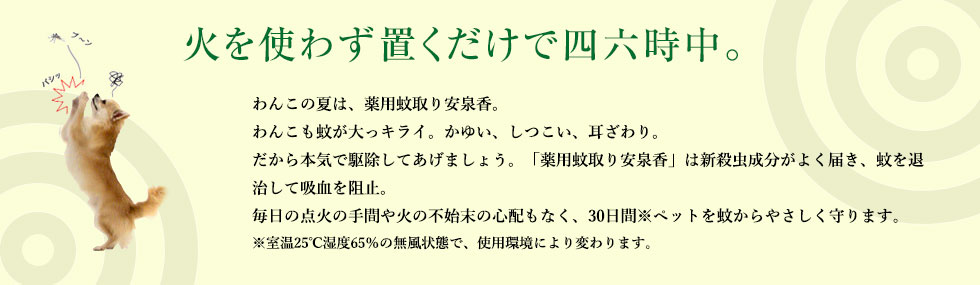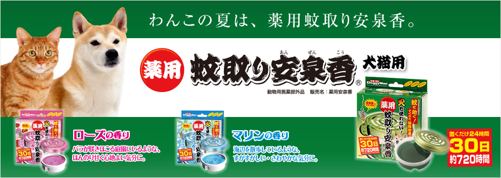 大切なペットのためにも、「薬用蚊取り安泉香」の通年使用をおすすめします。
