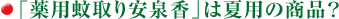 なんと、蚊の中には低温に強いため冬でも活動するものがいるのです。大切なペットのためにも、「薬用蚊取り安泉香」の通年使用をおすすめします。