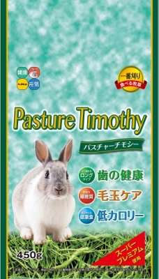 チモシーは高繊維・高たん白質・低カロリーのイネ科の牧草で、『牧草の王様』と言われています。チモシーをよく噛んで食べることで不正咬合から歯の健康を守り、噛み砕かれた繊維は消化を助け、おなかの健康を維持します。高品質な牧草産地として知られるアメリカ産のスーパープレミアムグレードを使用しています。トレーサビリティ(生産履歴の追跡可能性)により、安全・安心なパスチャーチモシーをお届けします。