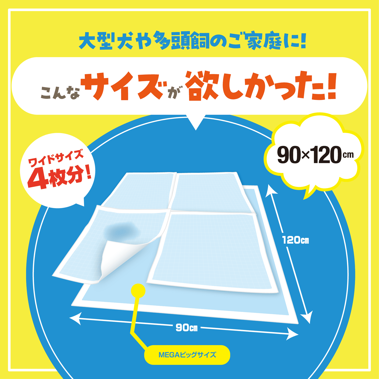 大型犬や小型犬多頭飼い主さんにペットシーツ最大級のMEGAサイズ