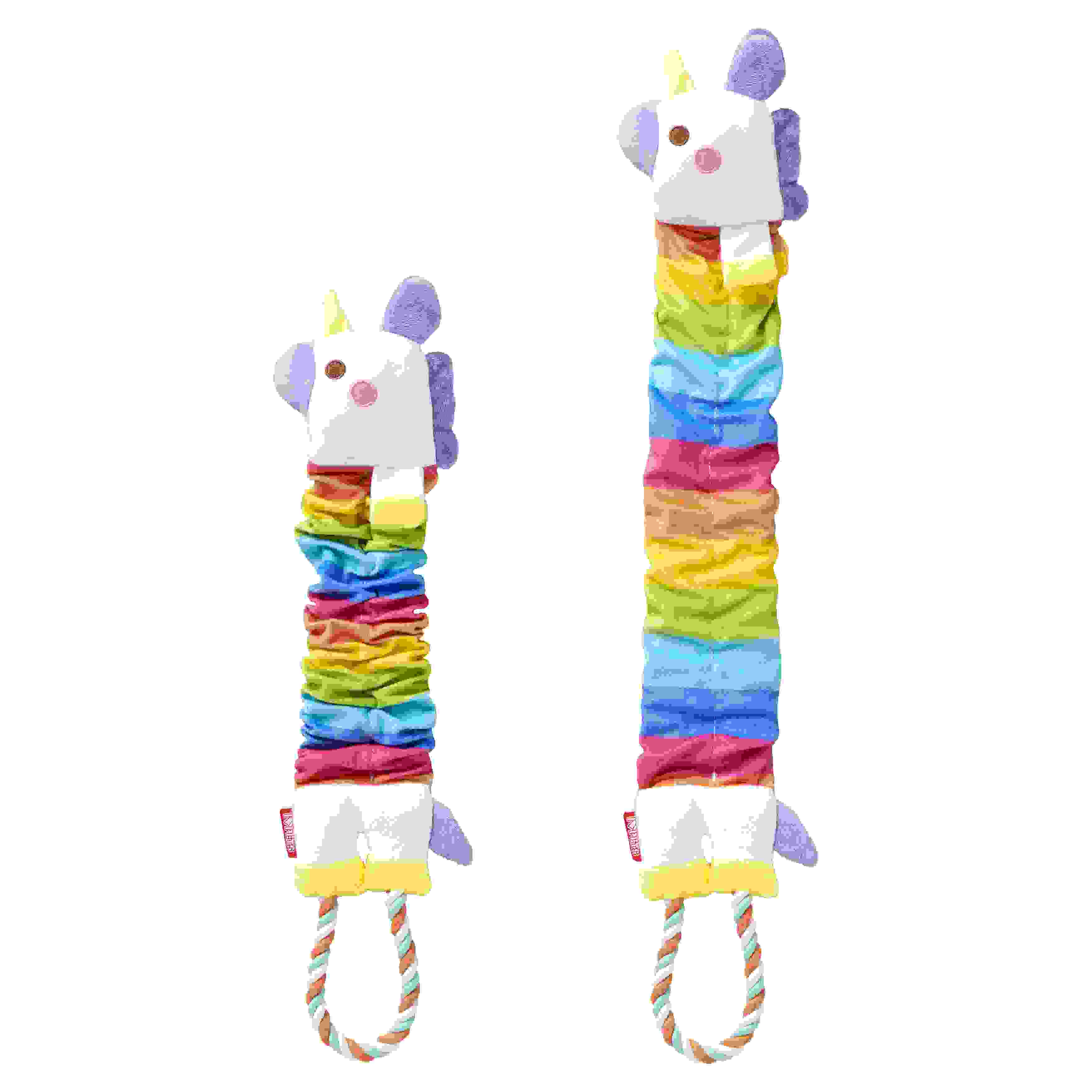 顔部分はピーピー笛入り、足部分は引っぱり合いがしやすいロープ付きです。