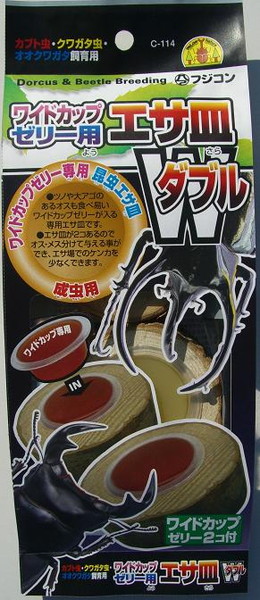 ツノや大アゴのあるオスも食べ易いワイドカップゼリーが入る専用エサ皿2個入りです。ゼリー2個付き。