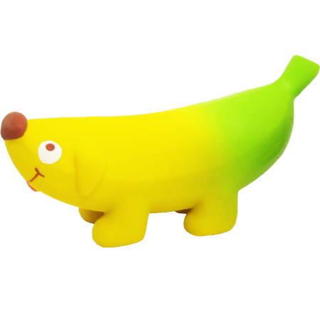 ペロッとした表情が可愛い、バナナそっくりなわんこのラテックストーイです。