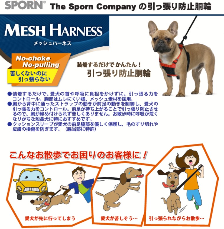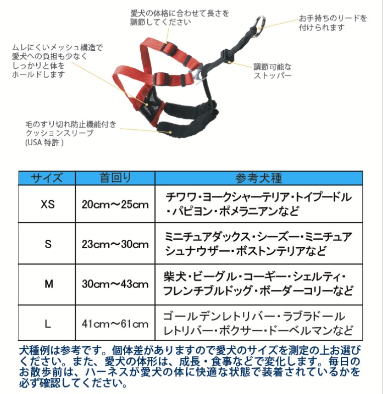 装着するだけで、愛犬の首や呼吸に負担をかけずに引っ張る力をコントロールできる、引っ張り防止胴輪です。胸から背中に通ったストラップの動きが前足の動きを制御し、愛犬の引っ張る力をコントロール。前足が持ち上がることで引っ張り防止させるので、胸が締め付けられず苦しくありません。お散歩時に呼吸が荒くなりがちな短鼻犬に特におすすめです。クッションスリーブが愛犬の前足脇部を優しく保護し、毛のすり切れや皮膚の損傷を防ぎます。(脇当部に特許)胸部はムレにくい様、メッシュ素材を採用。
