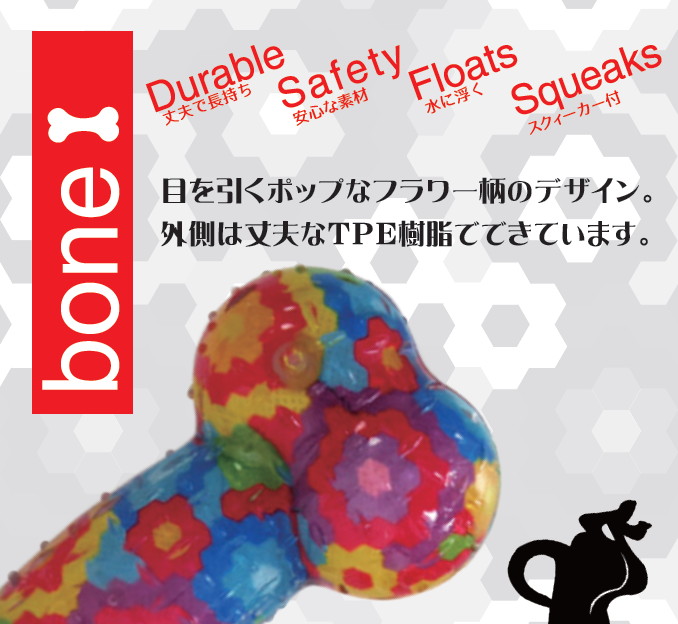 安全な素材、TPE樹脂を使用したポップで楽しい丈夫なドッグトーイ。